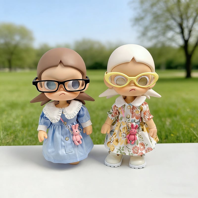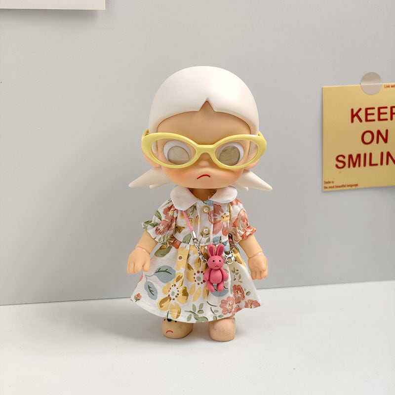 Zsiga&1/8ドール用 春 カジュアル 花柄/無地 ワンピース+メガネ+バッグ+靴 ぬいぐるみ 着せ替え衣装 4点セット