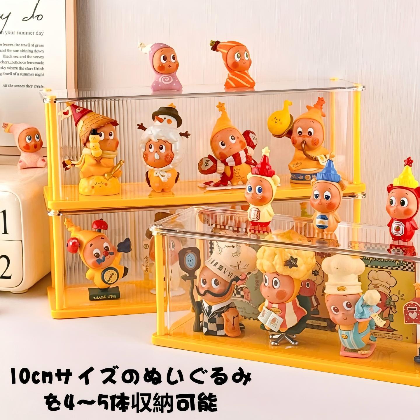 アクリル ディスプレイケース コレクション10cmぬいぐるみ 4-5体収納 高透明 装飾カード挿入可 収納ボックス 31.5×10.7×9.5cm