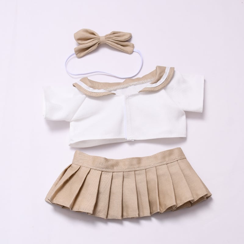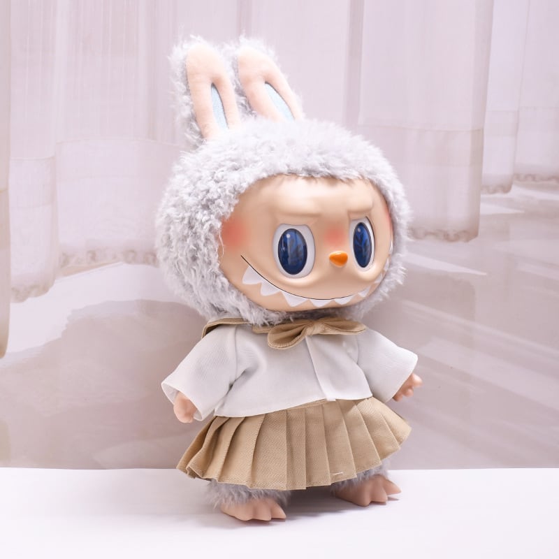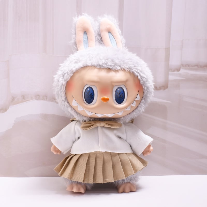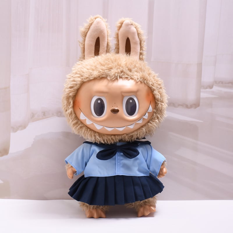 38cm LABUBU用 学生 学園風 トップス+スカート+リボンタイ ラブブぬいぐるみ 着せ替え衣装 3点セット ブルー/カーキ