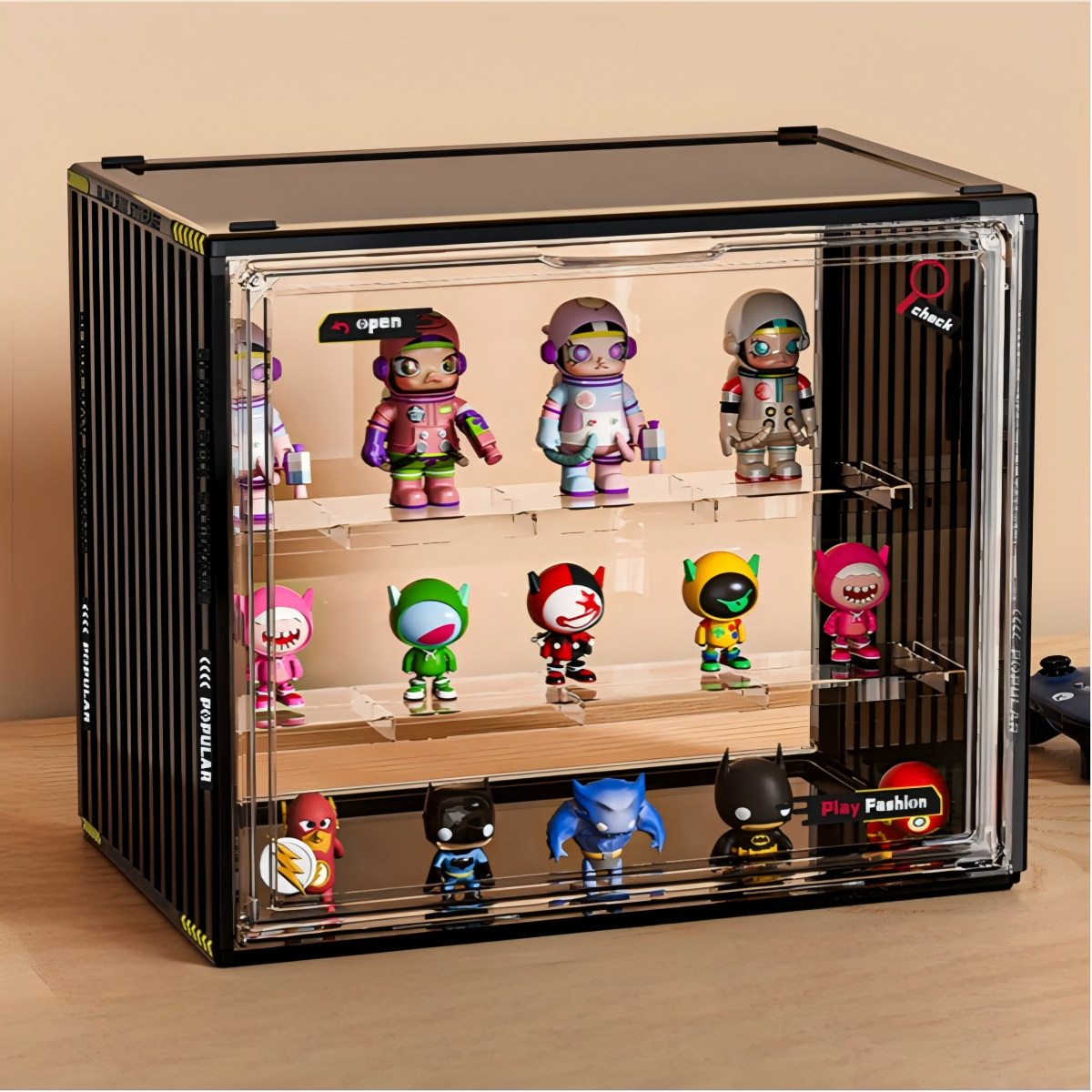 コレクションを立体的に飾れる、3段ステップ仕様のアクリルショーケース。