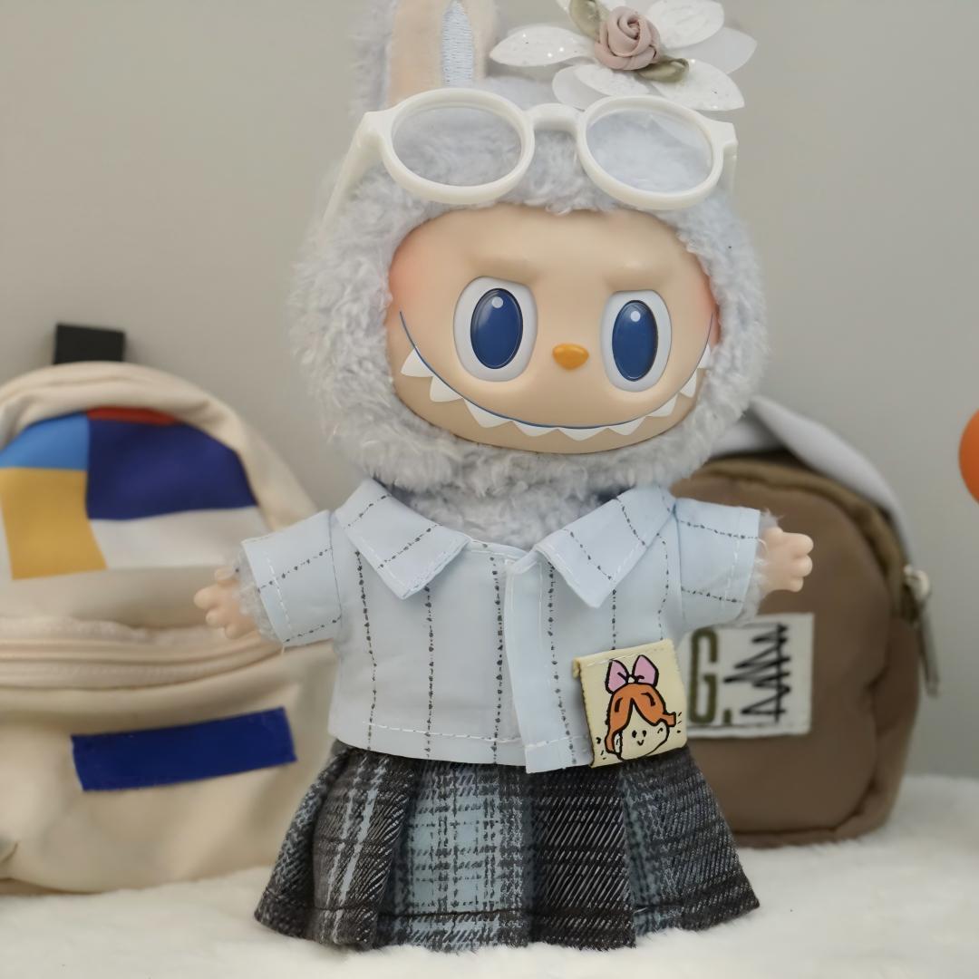 LABUBU 1-3代用 サマー カジュアル シャツ+チェックスカート ラブブ ぬいぐるみ 着せ替え衣装 2点セット 全3色