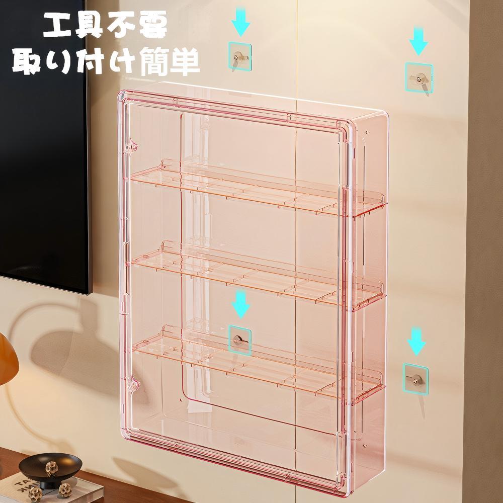 ぬいぐるみ用 4段 アクリル 収納ボックス 10cm人形20-24体収納 卓上&壁掛け両用 磁吸前開き ディスプレイケース 32×42×9cm 3色