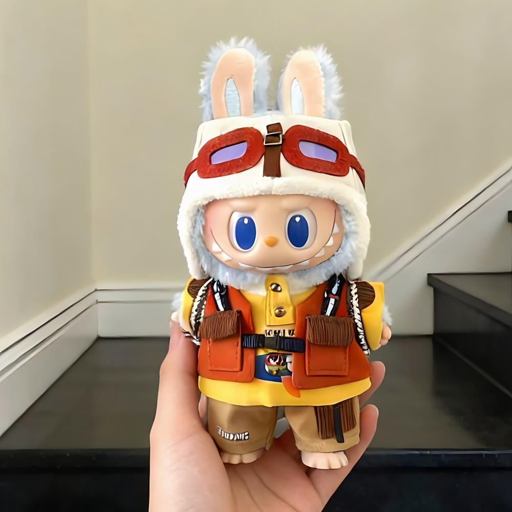 Labubu 1-3世代用 パイロット ベスト+トップス+パンツ+帽子+靴 ラブブ ぬいぐるみ 着せ替え服 5点セット