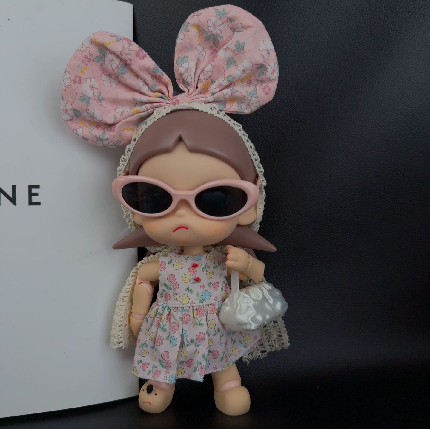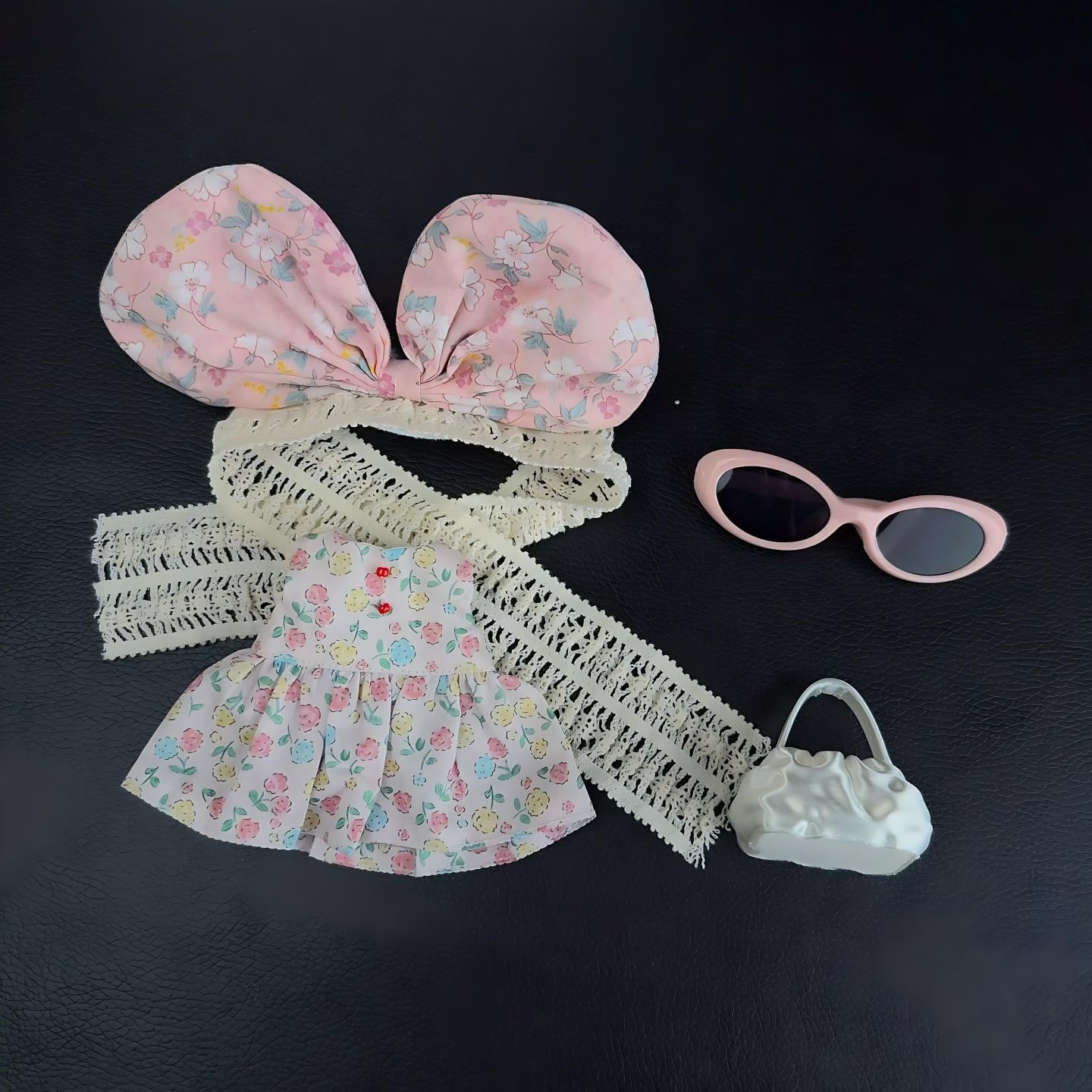 Zsiga&1/8人形用 花柄ワンピース+リボンヘアバンド+バッグ+メガネ ぬいぐるみ 夏 着せ替え服 4点セット