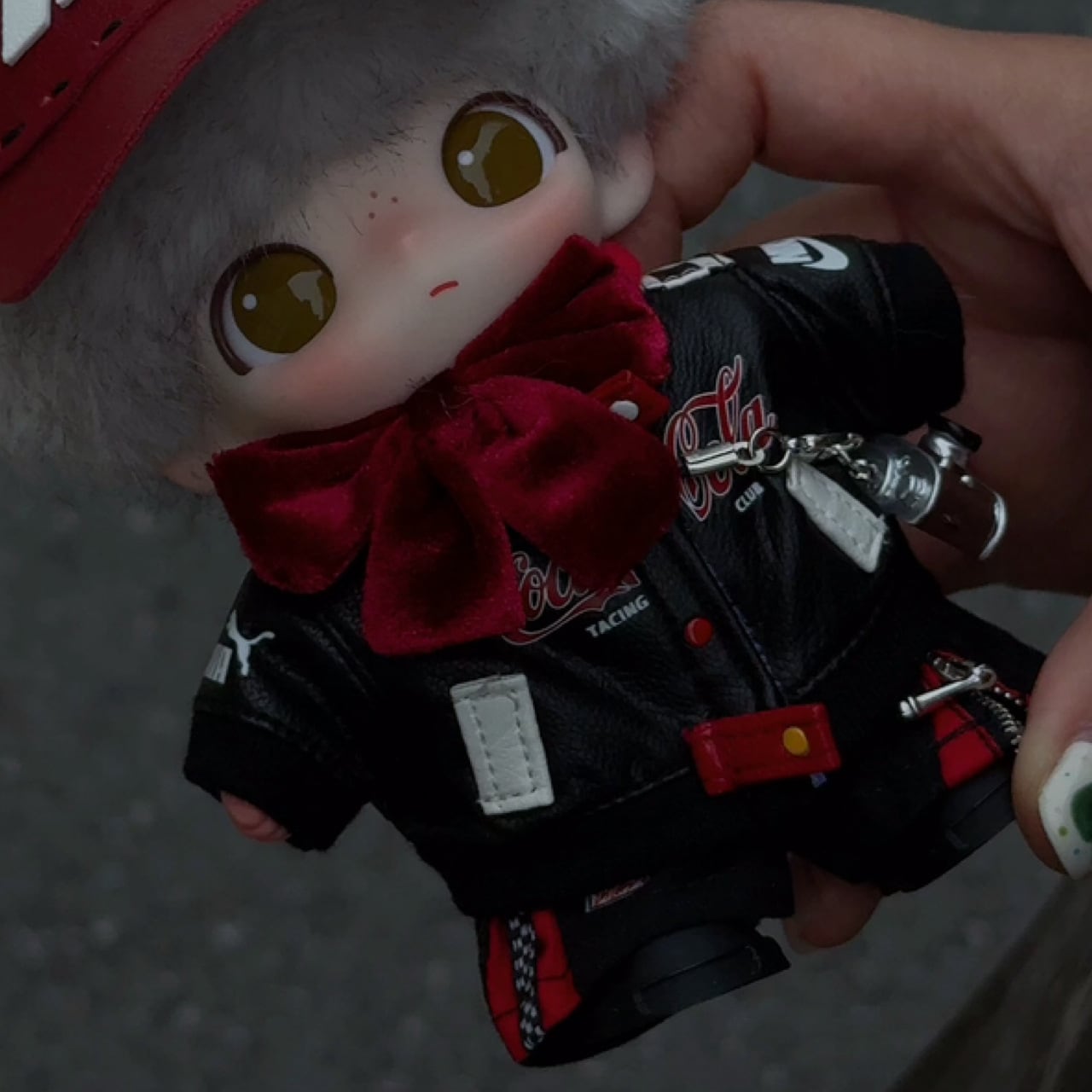 Dimoo用 レーシングスーツ ジャケット+パンツ+帽子+靴+カメラチャーム ぬいぐるみ サイクリング 着せ替え服 5点セット