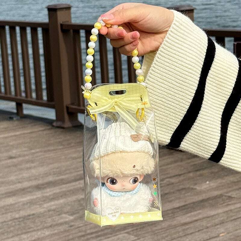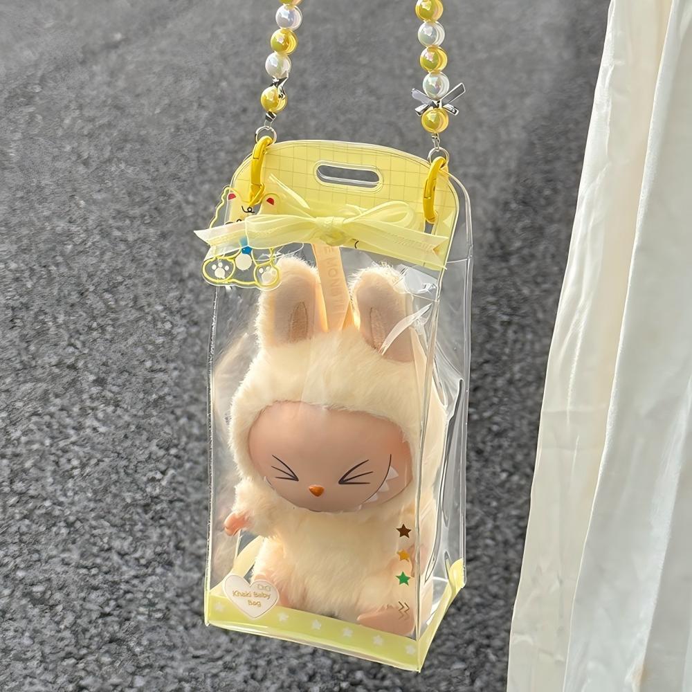 [抽選販売] DIMOO/Labubu1-3代対応 痛バッグ 透明 防水・防塵 収納ケース イエロー チェーン付き