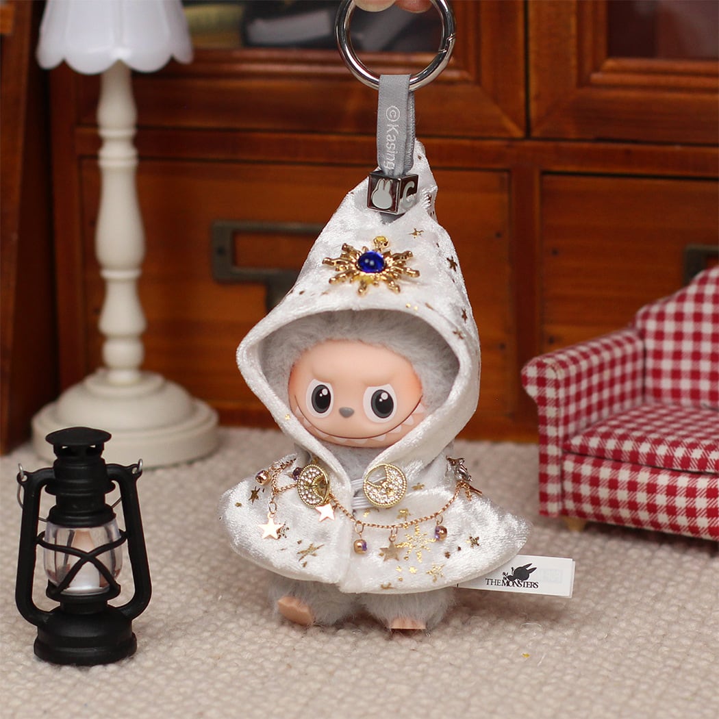 Labubu 4世代用 フード付きベルベットマント+星型チェーン ラブブ ぬいぐるみ 着せ替え服 ケープ 2点セット 全3色