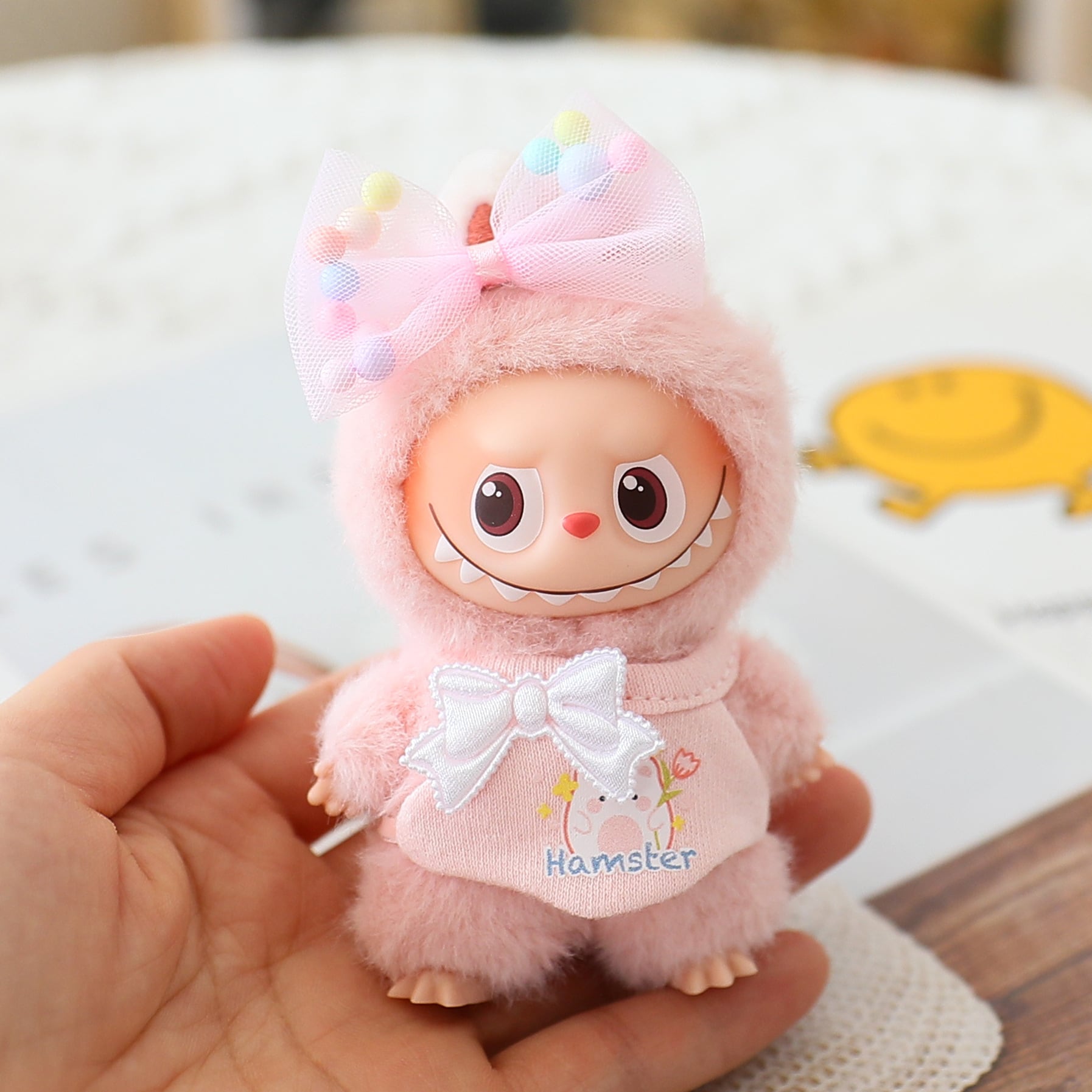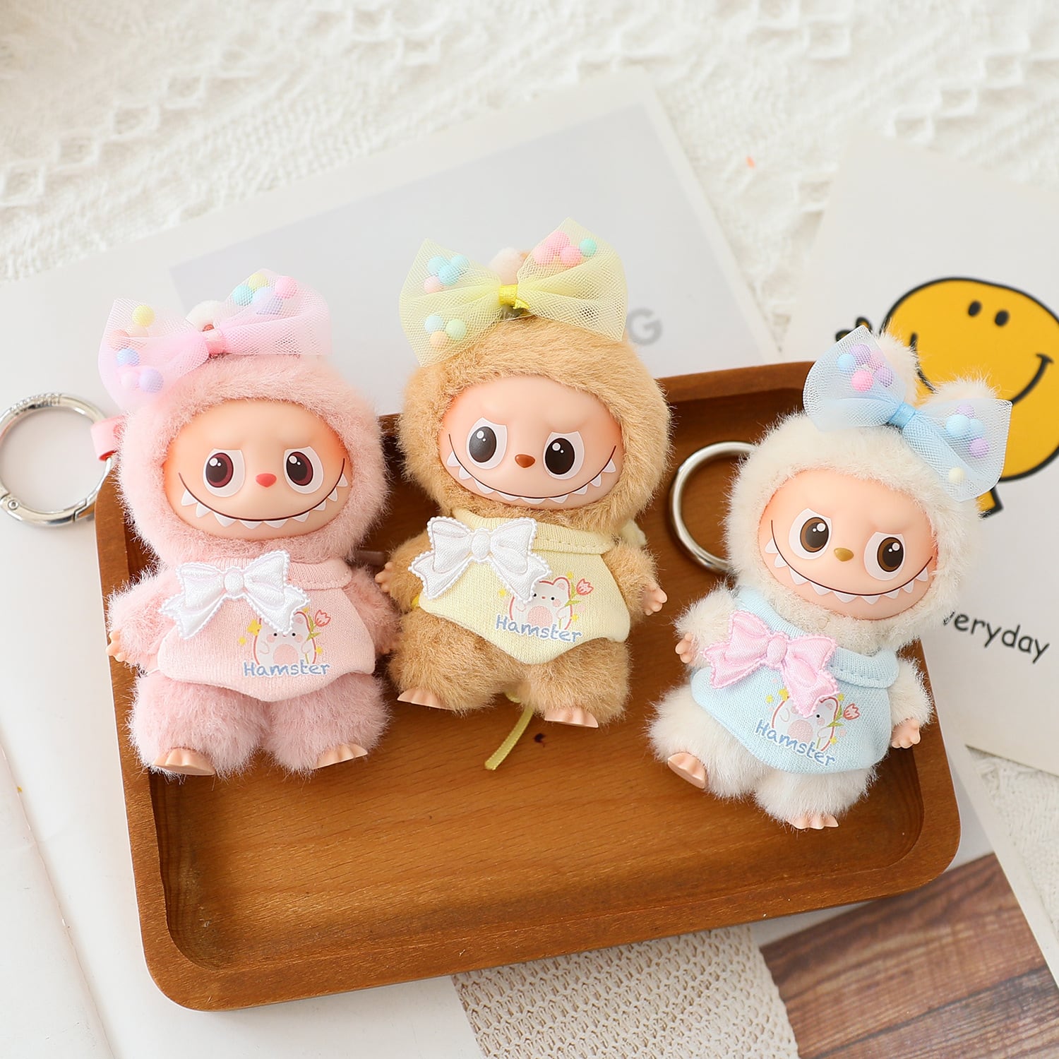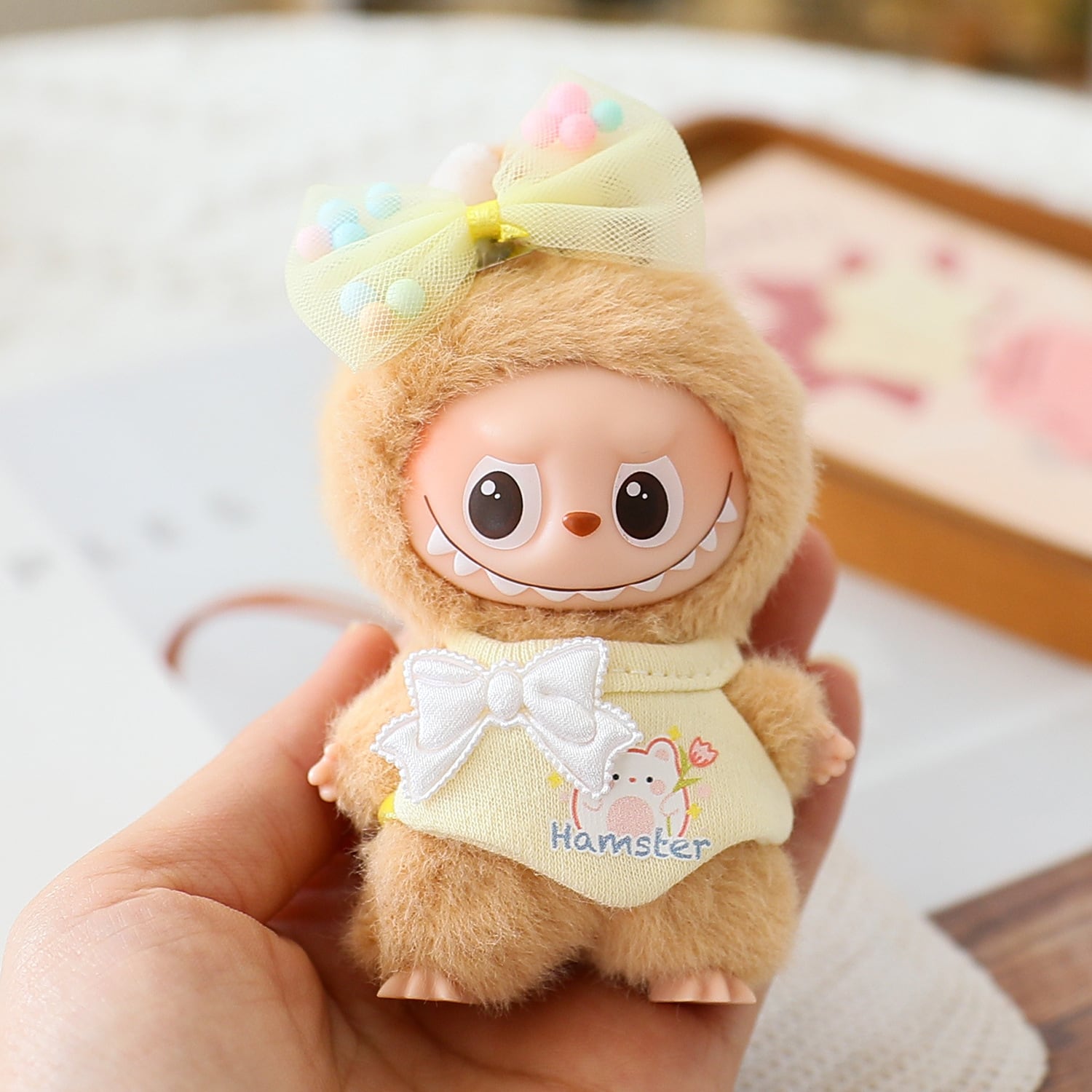 Labubu 4世代用 紐付きトップス+リボンヘアアクセサリー ラブブ ぬいぐるみ 着せ替え服 2点セット 全3色