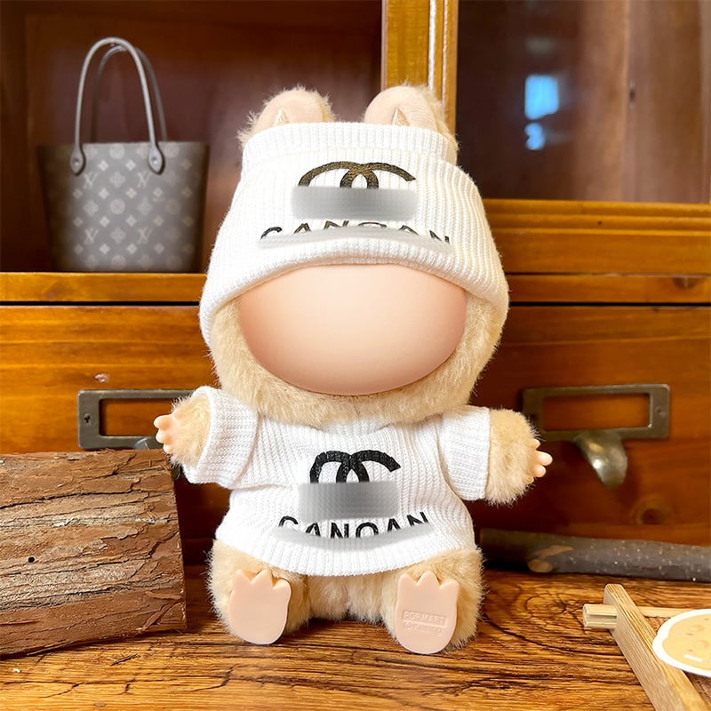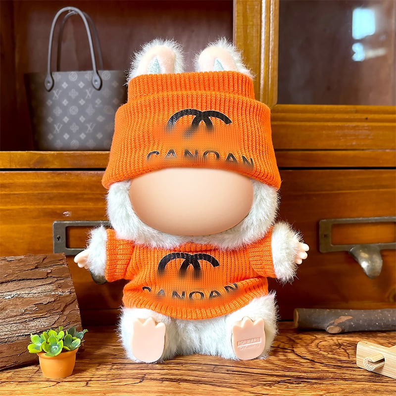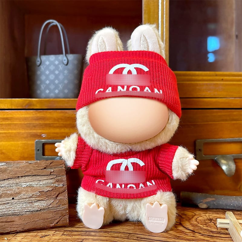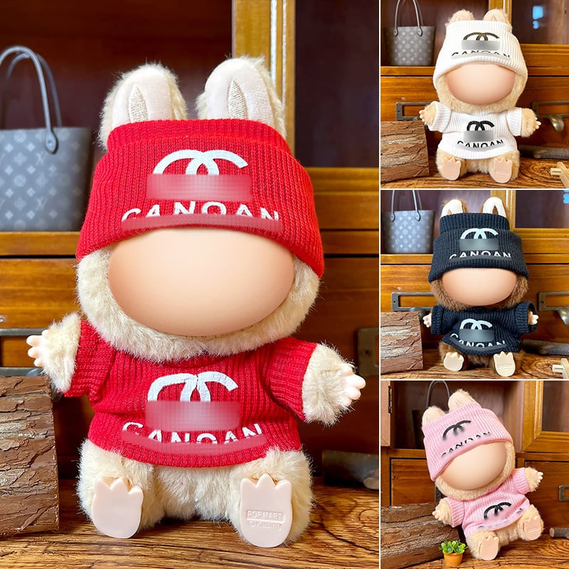 Labubu 1-3世代用 カジュアル ニットトップス+ニット帽 ラブブ ぬいぐるみ 着せ替え服 2点セット 全5色