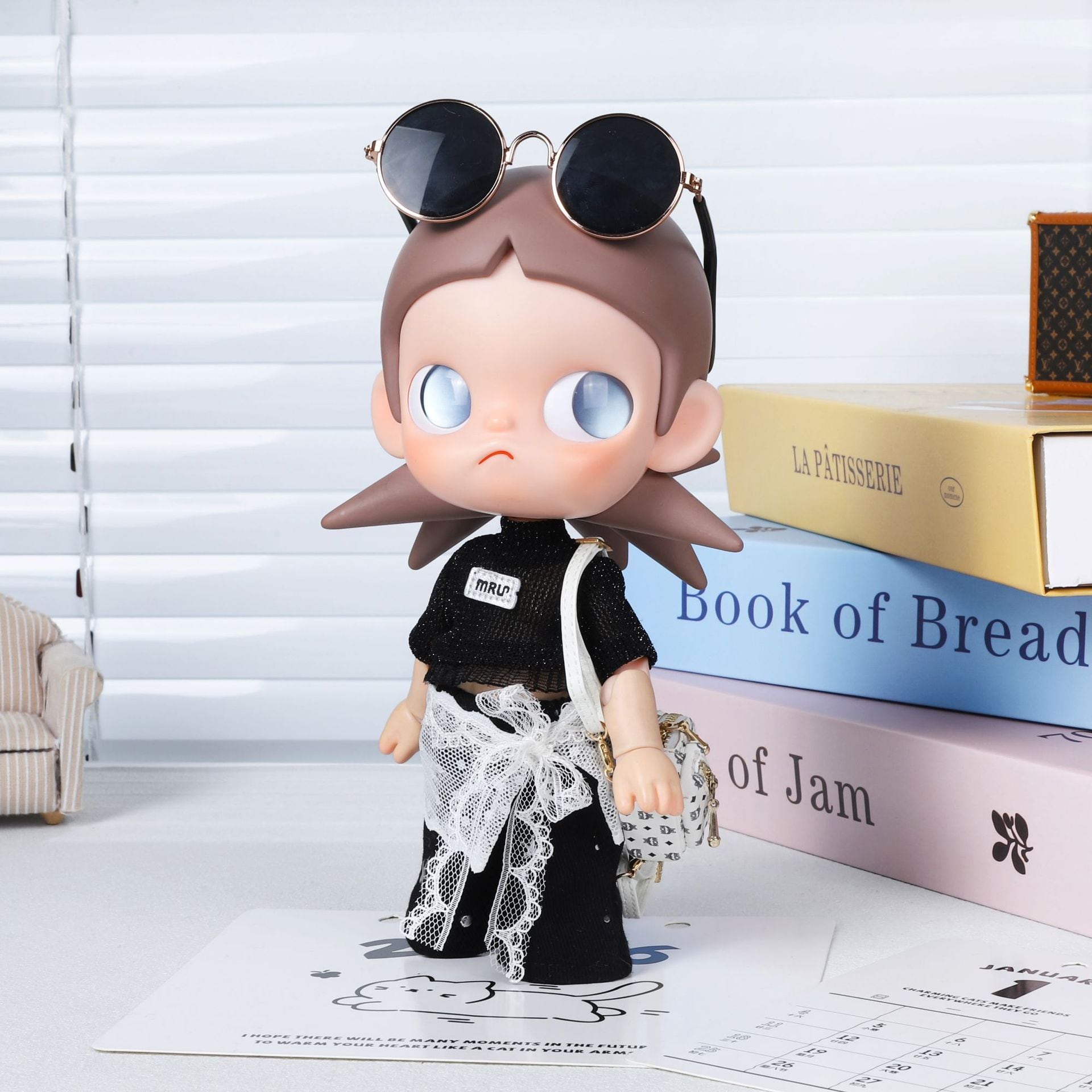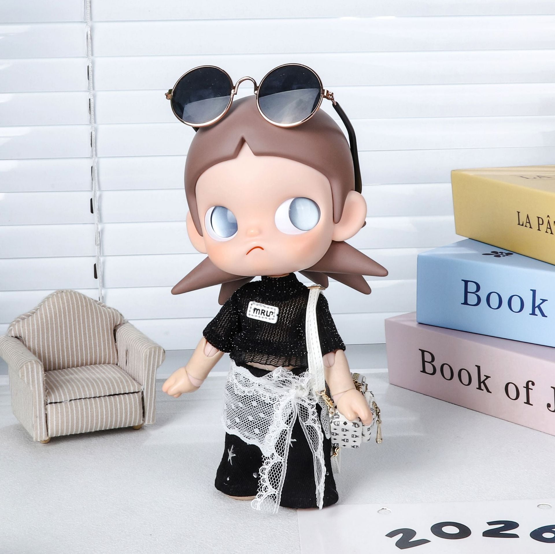 Zsiga&1/8人形用 キラキラトップス+ベルボトム+レースベルト ぬいぐるみ用 着せ替え服 3点セット ブラック
